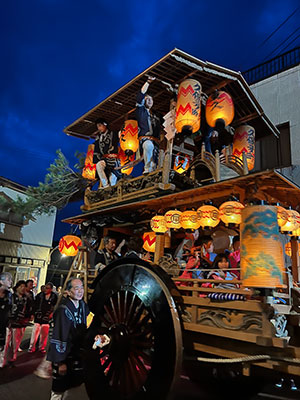 おしゃぎりは1日中町を練り歩きます。現存のおしゃぎりで最も古いものは、江戸時代の宝暦十年(1760年)に造られた肴町のおしゃぎりだとか。見られるのも今の内でしょう。