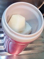 たったそのことのためだけに、週末に会社に立ち寄り、氷牛乳を作りました。まずは前日に入れておいて凍っている牛乳を氷皿から外して、また氷皿に牛乳を入れて凍らす、という作業の繰り返しです。