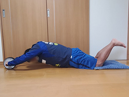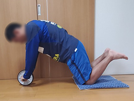 膝コロとは、膝をついた状態でローラーを使って伸びたり縮んだりします。
