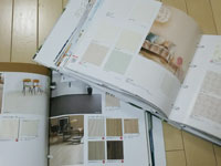 | 壁紙や床のサンプル。 たくさんありすぎて選びきれず。 |
