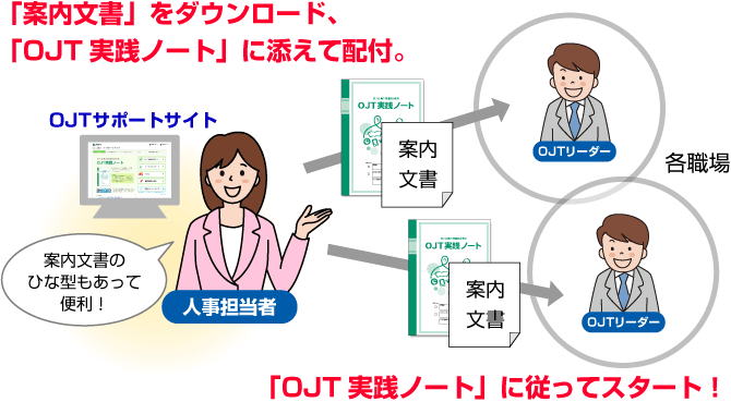- 案内文書のひな型は、「OJTサポートサイト」の人事・教育ご担当者向けのページに準備しています。